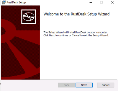 Double click on the downloaded file and allow the RustDesk Setup Wizard to install RustDesk